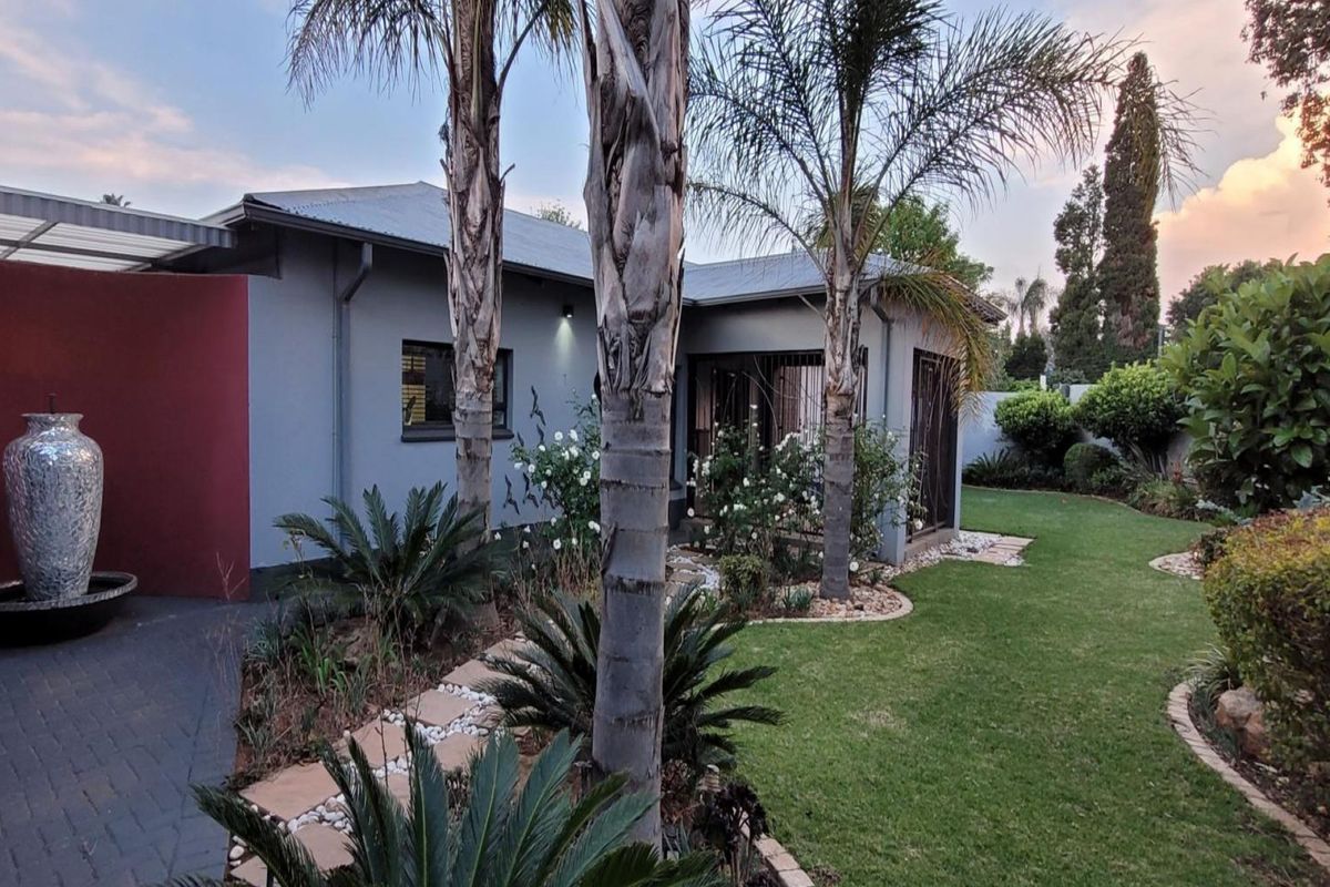 Host relaxed gatherings in sought-after Rynfield, Benoni, on a large corner stand with entertainment area and pool, plus separate flatlet; three beds, two-and-a-half baths, four garages.