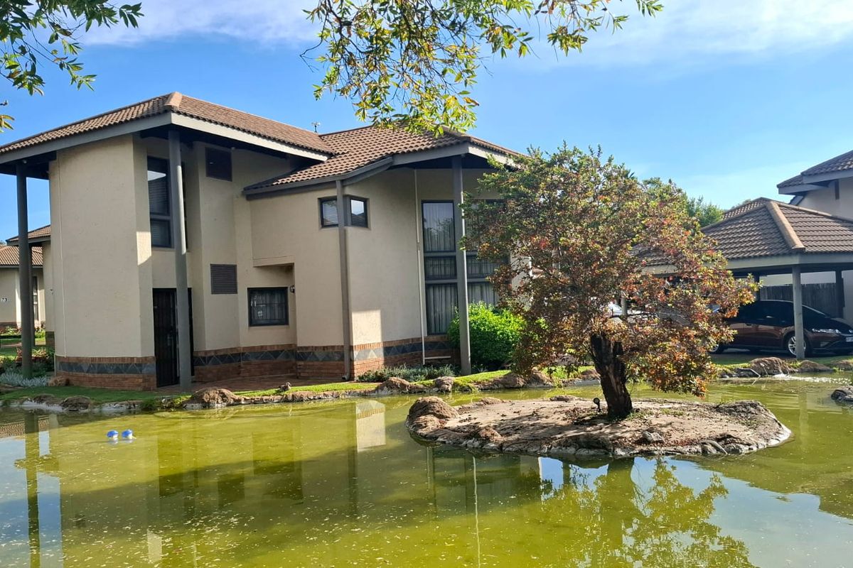 Enjoy country-estate living in Kopanong Country Estate, Benoni — open-plan home overlooks a tranquil pond with fountain. Four bedrooms, three bathrooms, plus secure, resort-style amenities.