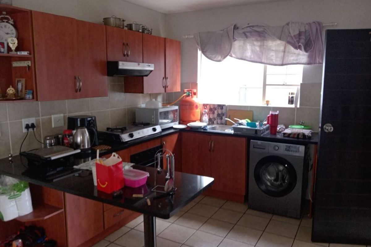 The lounge and dining room create a welcoming environment for relaxation and entertaining guests. The property includes two cozy bedrooms, both fitted with built-in cupboards (BIC), ensuring sufficient storage. A neatly designed bathroom serves the household efficiently.