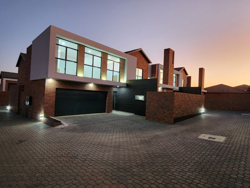 Entertainer's lifestyle on Leith Road, Bartlett — north-facing double-storey in a private 19-unit complex with a private patio and built-in braai; three beds, 2.5 baths, double garage.