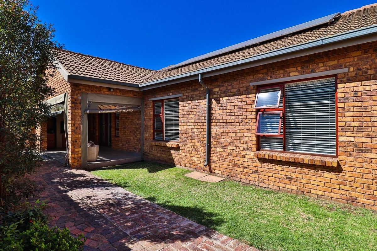 Easy entertaining from a covered patio with built-in braai and manicured private garden in a secure complex near Woodlands College, highways and shopping. Three bedrooms, two bathrooms, double garage.