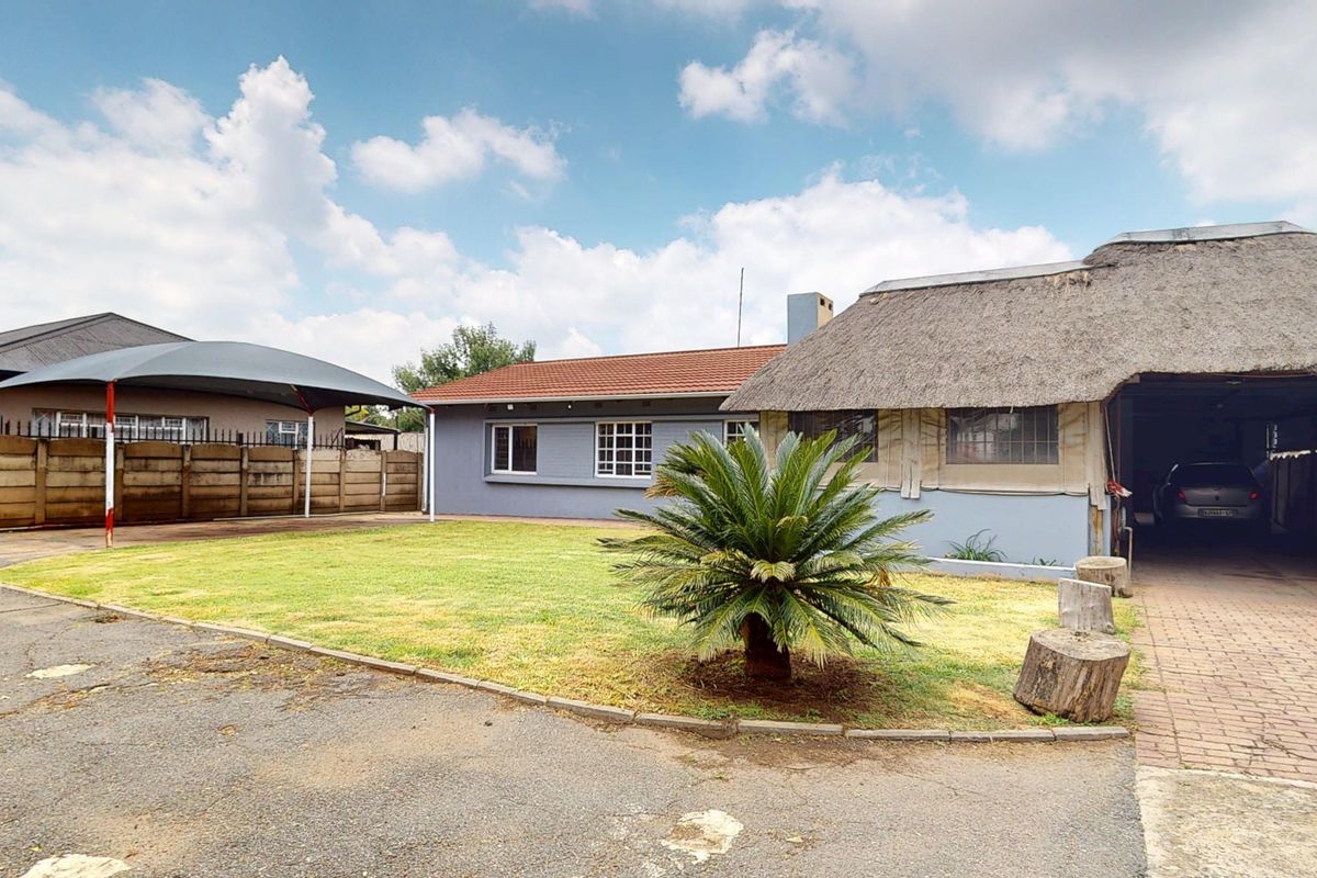 Relaxed suburban family living in Comet, Boksburg — close to schools and shops, large fenced yard with thatched lapa and built-in braai. Four bedrooms, 1.5 baths, undercover parking.