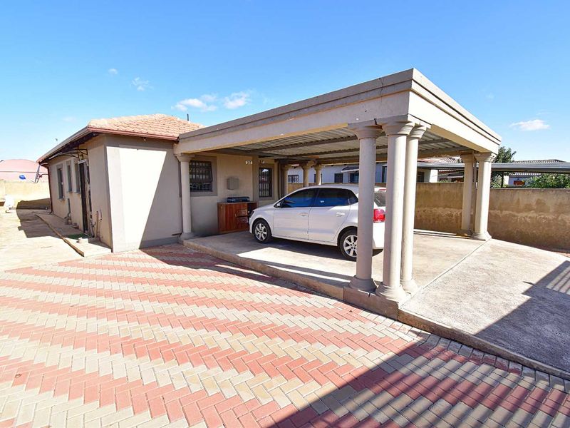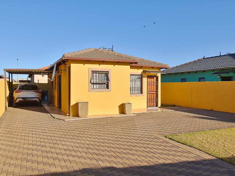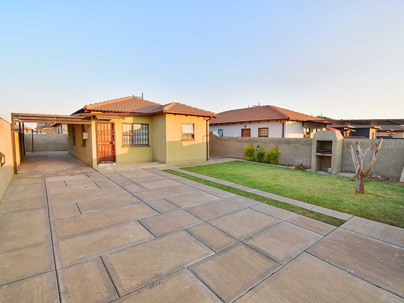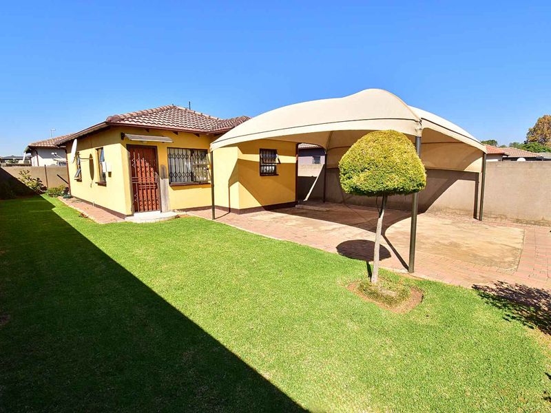 Charming 3-bedroom home with built-in cupboards, 2 bathrooms, garden, braai area, modern kitchen, and carport for 2 vehicles.
