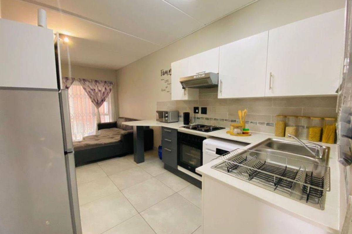 Enjoy relaxed, secure living minutes from East Rand Mall and top schools in Ravenswood, with a private garden, bright open-plan living — two beds, one bath, covered parking.