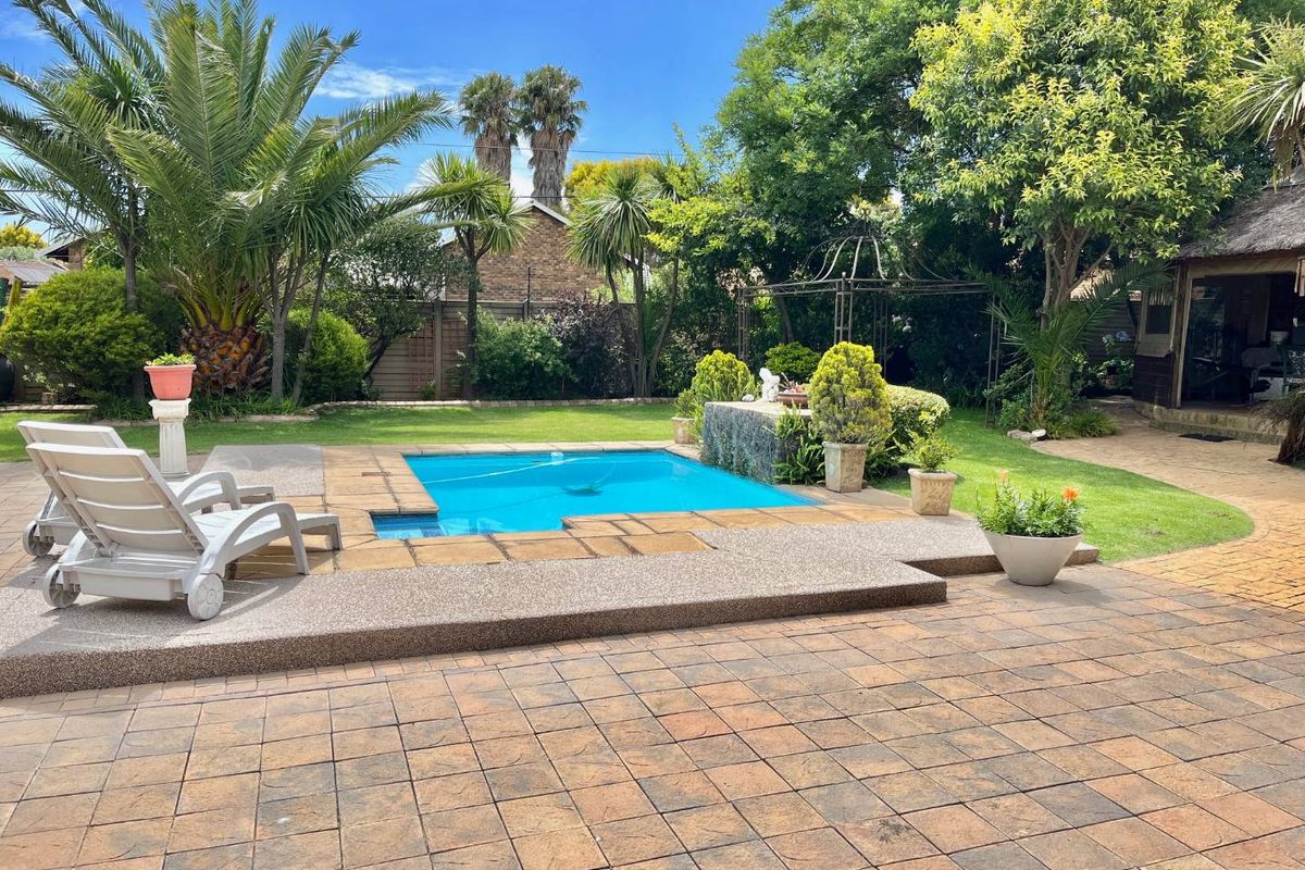 Step into the expansive entertainment area, a true highlight of the property. Accommodating a bar, an 8-seater table, and an indoor braai, this north-facing space is perfect for hosting gatherings or enjoying quiet evenings. The area opens seamlessly onto a solar-heated splash pool through elegant wooden sliding doors, creating an inviting atmosphere. Equipped with a projector for movie nights and tiled flooring for easy maintenance, this entertainment hub is separate from the main house, ensuring privacy. Adjacent to it is a versatile Lapa with a thatch roof and canvas closures, ideal for use as a gym or secondary entertainment area.