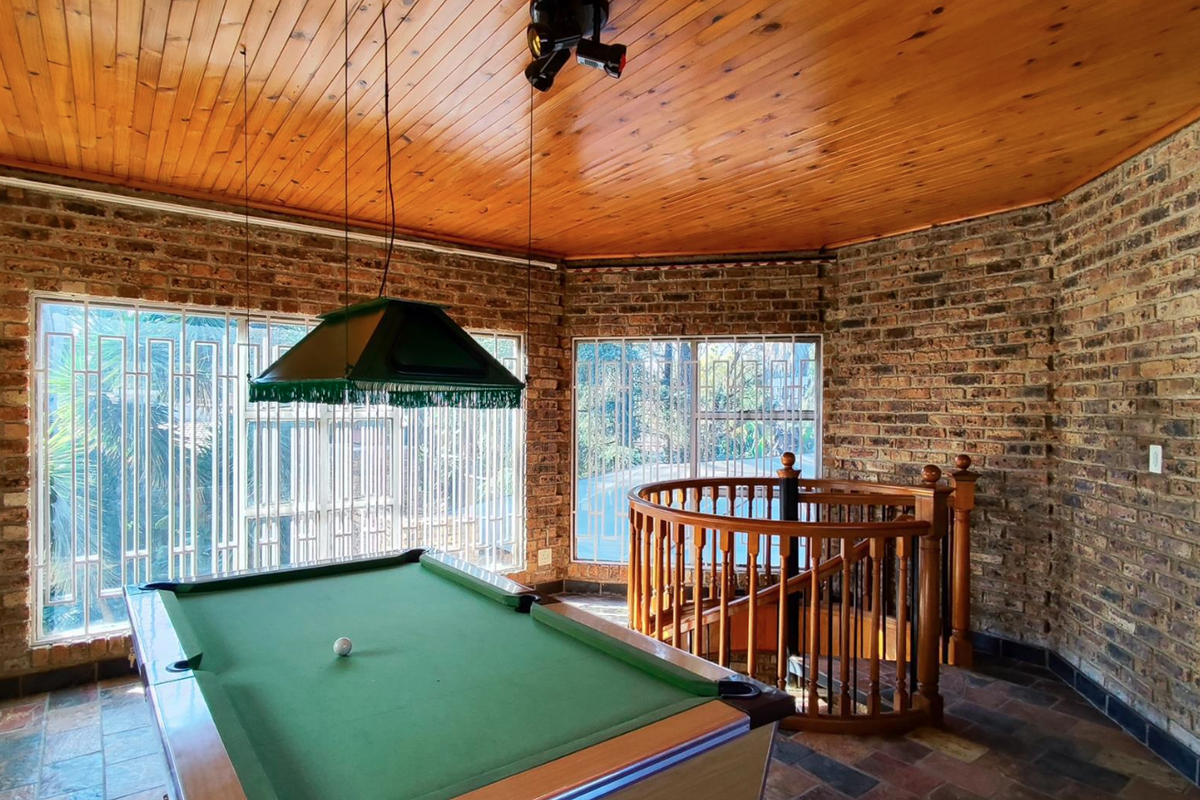 Entertaining is in the order of the day with the upstairs mancave that includes a pool table for your pleasure. Downstairs is a built-in bar and a huge swimming pool that is housed/enclosed and private– including a pool heater. All in working order.