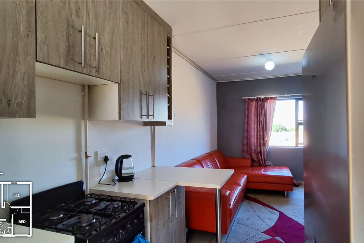Low-maintenance urban living in a fast-developing, well-connected area near schools, shopping and transport; sleek open-plan kitchen, secure parking and prepaid electricity — two bedrooms, one bathroom.