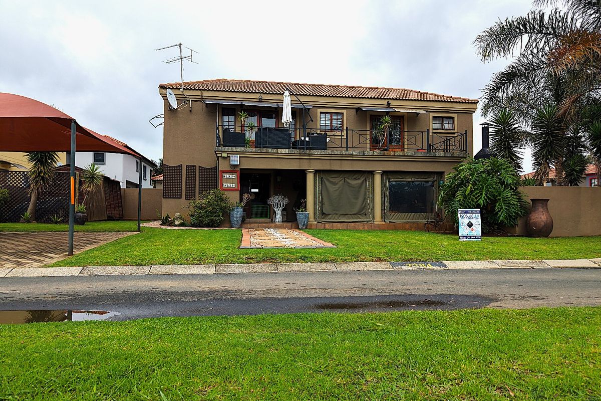 Relaxed, secure living in a 24/7 guarded complex with a private garden and upstairs patio, plus an 8 kW solar system; three bedrooms, 2½ bathrooms and shade-net parking for two.