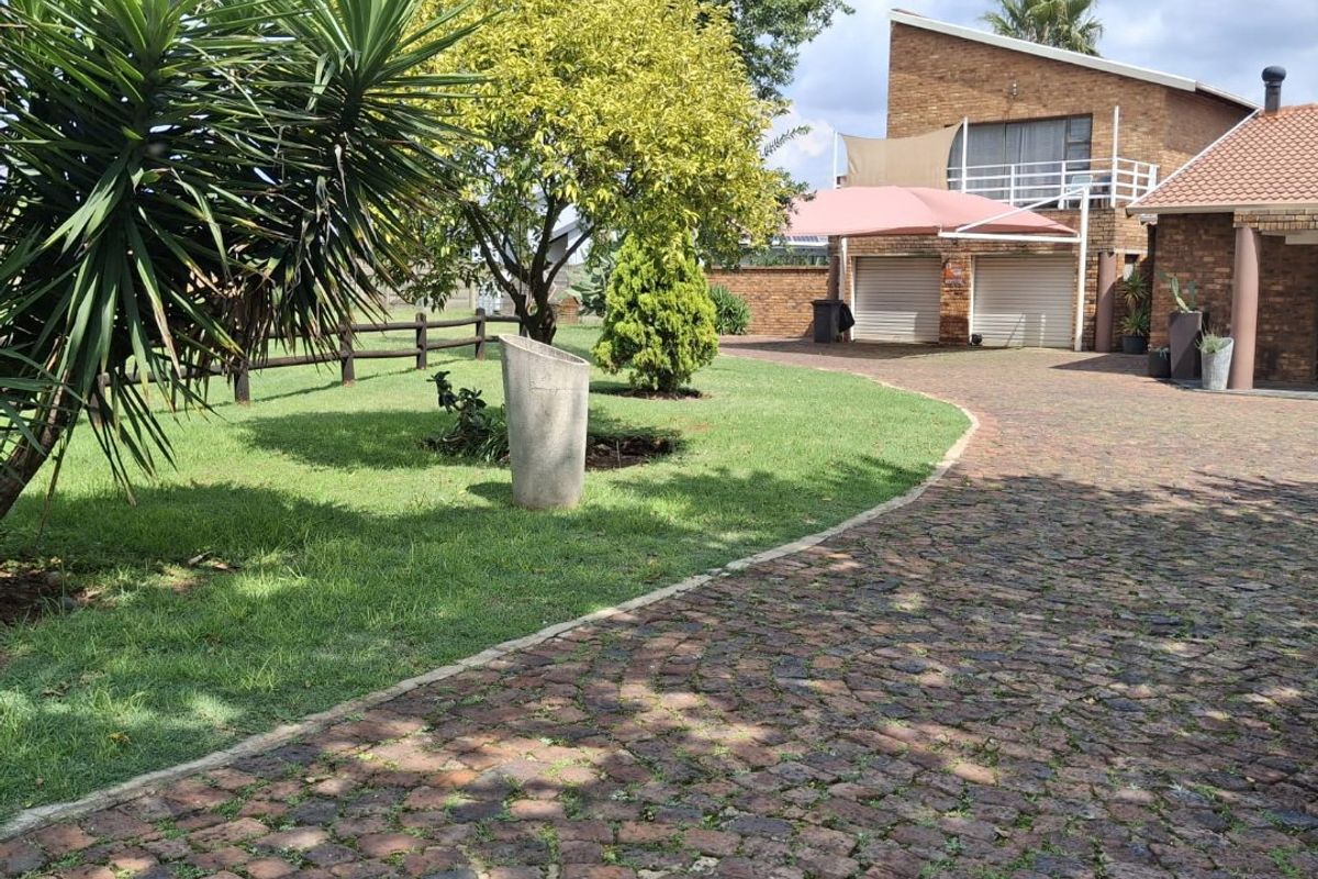 Entertainers and multigenerational families will love this Dalpark Ext 1 oasis with a thatched lapa — two 4-bed homes plus a bachelor flat offer income flexibility and generous grounds.