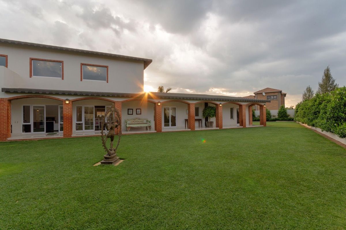 Double interior doors throughout, window blinds and aircons. Wrap tiled patio with surround sound music onto garden with water feature, borehole, booster pumps and irrigation, plus a Husqvarna robotic lawnmower.