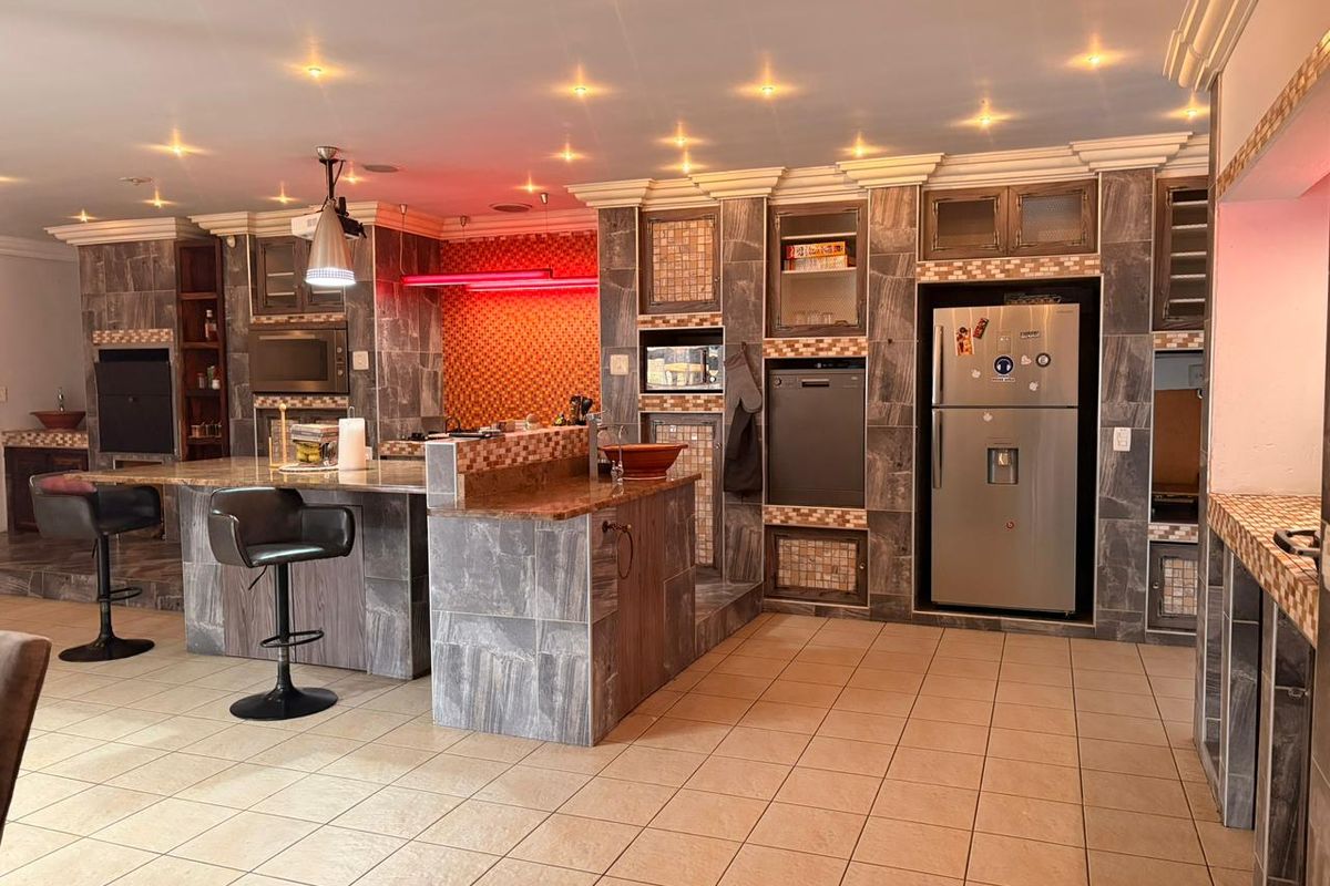 This modern and stylish home with a 3 bedroom and 3 en-suite bathrooms offers a perfect blend of comfort, space and modern living boasting 3 well sized bedrooms with 3 en-suite bathrooms and a separate toilet. This home is ideal for a family or for those who love to entertain. Upon entrance to the home you are welcomed with a cinema room which is perfect for those cozy family movie nights, leading to a well designed and spacious kitchen that is fitted with built-in cupboards, granite counter tops and ceramic tiled walls and a built in braai leading to the bar area overlooking the outside patio for those relaxing moments with a built in braai area. The home also offers an upper level lounge area which is ideal for those moments spent with the family. The bedrooms are well laid out with master bedroom walk in closet as well as fitted built-in cupboards each room is well laid out and has enough natural lighting. This is a must to view.