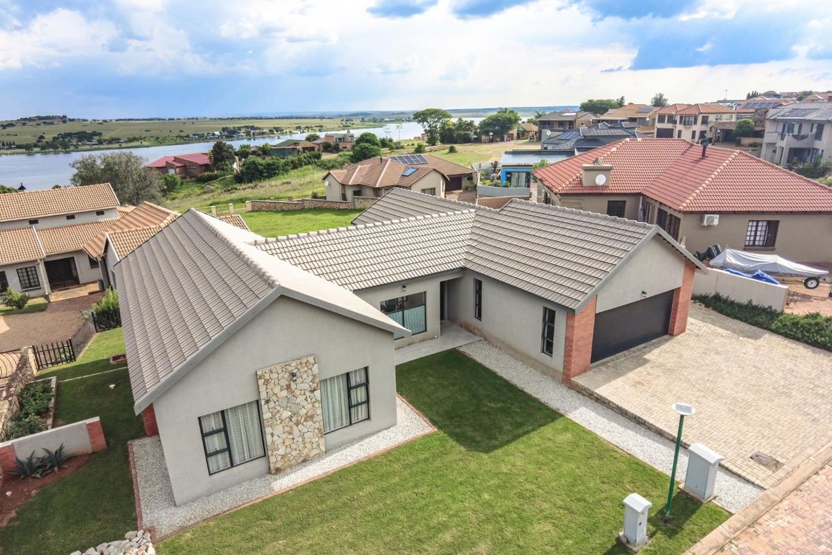 Live waterside in a secure gated estate with dam access for boating; enjoy sunset dinners on the tiled patio, designer kitchen, four bedrooms, two baths and double garage.