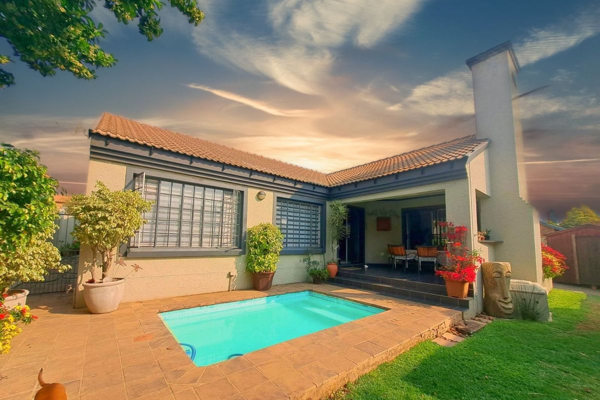 Relaxed family living in Amberfield Glen Estate's secure location, steps from a major mall; renovated interiors, modern gas kitchen, covered entertainment patio with built-in braai and sparkling pool, three bedrooms.