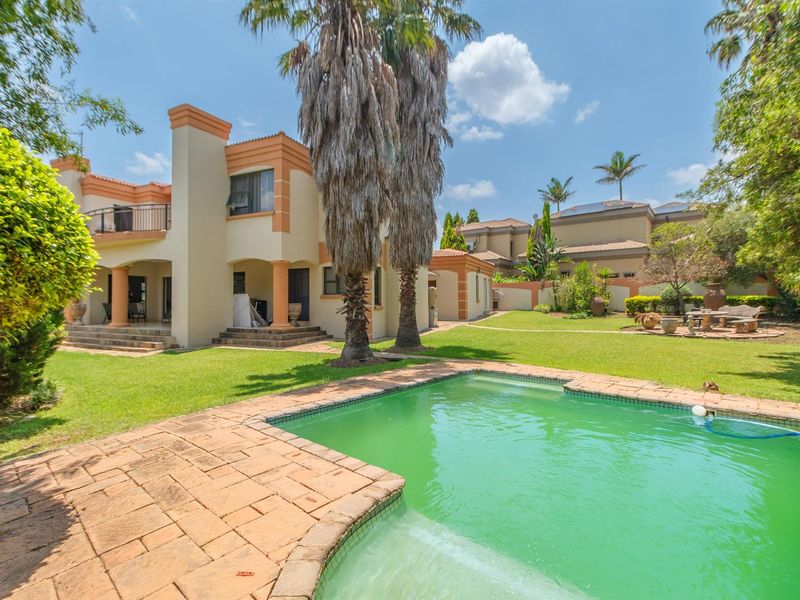 Championship-golf estate living in Blue Valley Golf Estate with expansive double stand, private pool and landscaped garden. Includes five bedrooms, 3.5 baths, home office and double garage.
