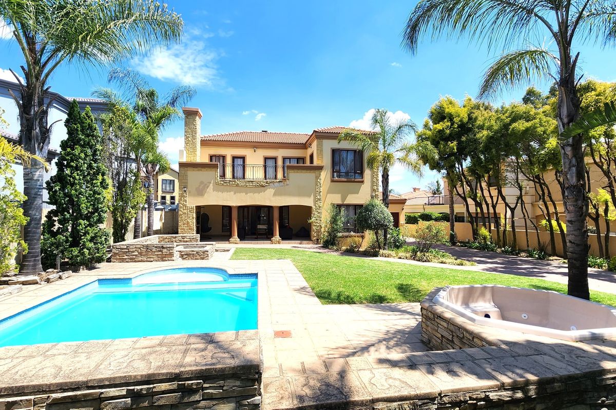 DUAL MANDATE! Welcome to your Private Sanctuary in the prestigious Blue Valley Golf Estate. This exquisite property invites you into a world of luxury and tranquility, surrounded by lush landscapes and the renowned Blue Valley Golf Course. As you approach from the driveway, a meticulously maintained garden unfolds before you, showcasing a glistening blue pool and inviting jacuzzi area – the perfect setting for relaxation and entertaining. The residence boasts a cosy kitchen and scullery, providing ample space for two appliances, ensuring practicality meets style. The heart of the home is the warm and inviting lounge/TV area, complete with a fireplace for cozy evenings, and air-conditioning for comfort during warmer days. Step outside to the patio area, featuring a built-in braai, ideal for al fresco dining and entertaining guests. The dining room offers an elegant space for formal gatherings and memorable meals. This well-appointed home includes a guest bedroom downstairs with an en-suite bathroom for added convenience, as well as a guest toilet. Upstairs, two bedrooms share a full bathroom, and a spacious balcony provides breathtaking views of the meticulously landscaped garden below. The crowning jewel of the property is the expansive main bedroom, offering an en-suite bathroom with his and her basins and a luxurious jacuzzi bath. This retreat also features a walk-in closet and a vanity area. The main bedroom shares a balcony with the other two bedrooms, creating a seamless blend of indoor and outdoor living. Notable features of this property include a double garage with ample space for parking both inside and along the driveway. Additionally, there are staff quarters outside, ensuring convenience and privacy. The outdoor area is a haven for relaxation and entertainment, with a pool, jacuzzi and bonfire area. Practicality meets elegance with a linen cupboard upstairs and a storage room beneath the staircase, providing ample space for organized living. This residence in Blue Valley Golf Estate is a rare opportunity to experience the epitome of comfort and luxury in a private and serene setting. Your dream home awaits.