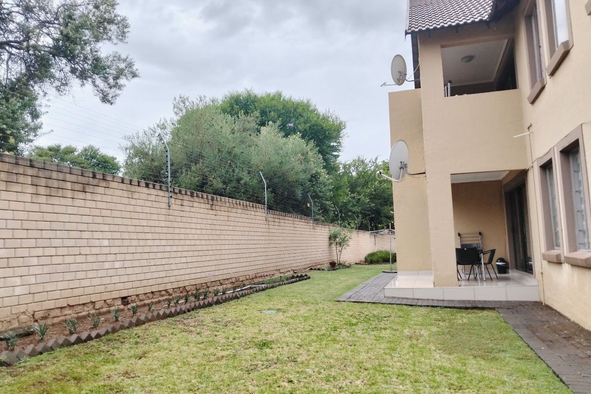 Relaxed, secure estate living with pool, clubhouse and quick N1/Gautrain access; ground-floor townhouse opens to a private garden and includes three bedrooms, two bathrooms and two covered parking bays.