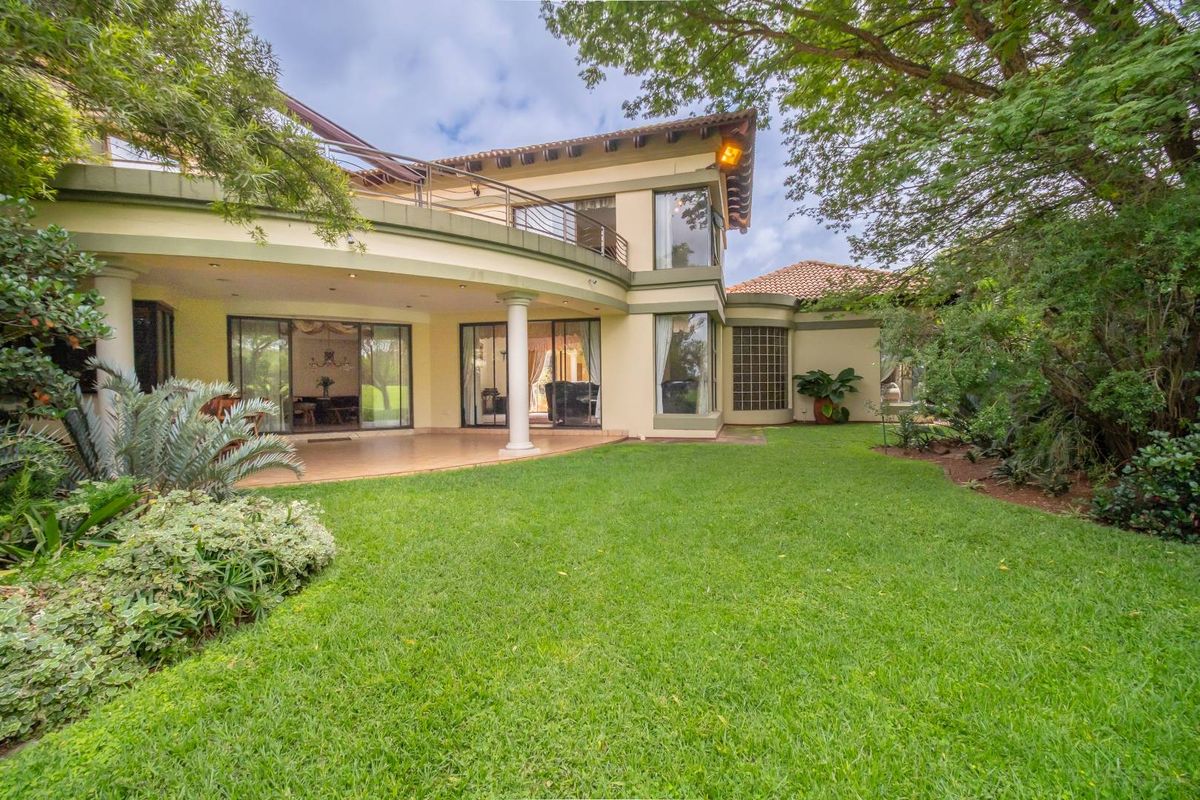 Resort-style entertaining within Centurion Golf Estate, set beside fairways with a tropical private garden; central courtyard with deep pool, sauna and jacuzzi. Four bedrooms, three bathrooms, triple garage.