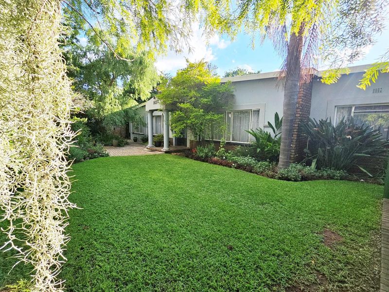 Entertain effortlessly in a private, leafy 1,986 m² garden with a covered alfresco area featuring a pizza oven and built‑in braai, swimming pool and borehole. Four bedrooms, two bathrooms.