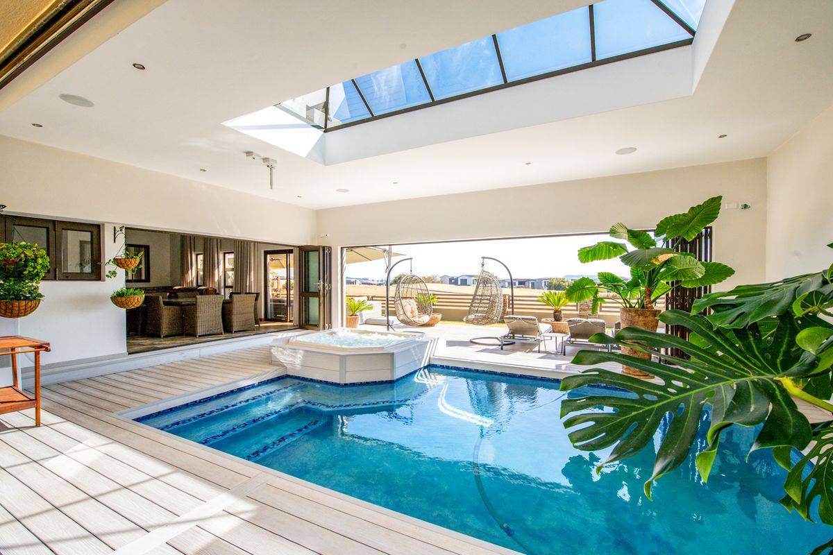 Perfect for multi-generational living against the Magaliesberg, overlooking the 12th and 13th fairways; features four separate homes, indoor heated saltwater pool with 8-seat Jacuzzi and 11 bedrooms.
