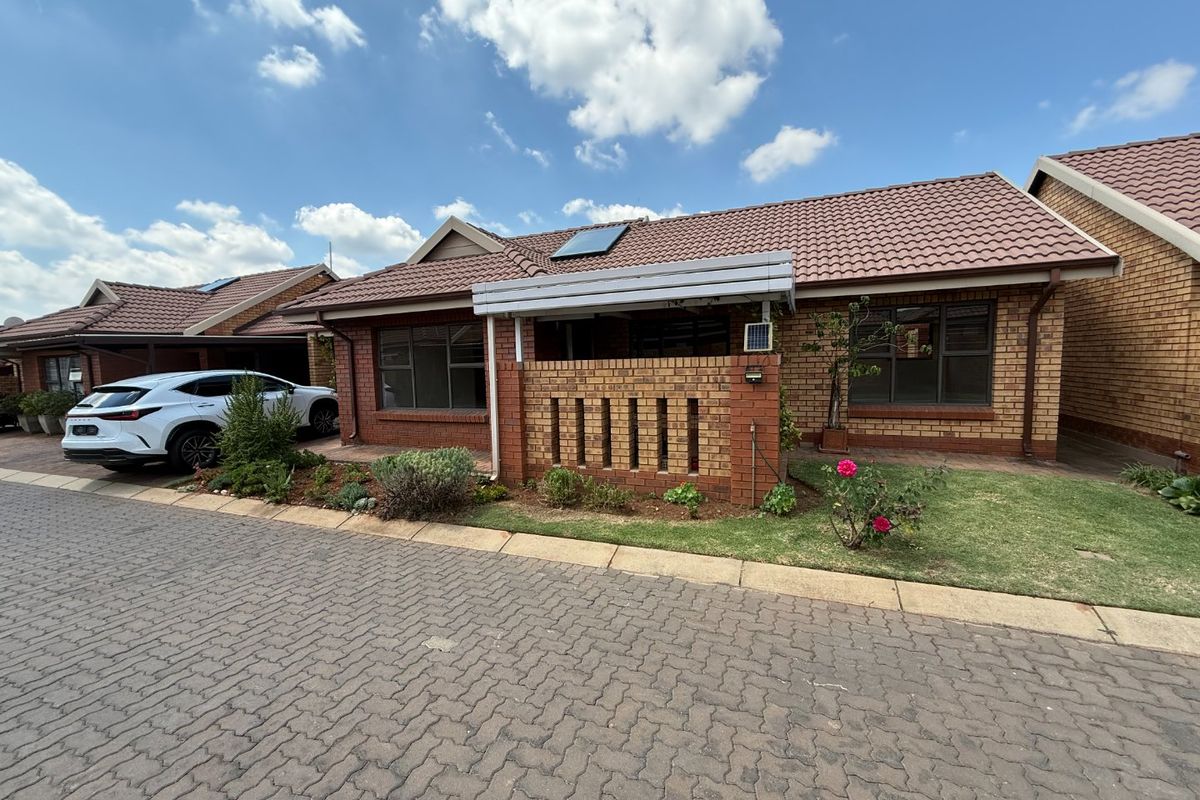 Relaxed retirement living in a secure estate with 24-hour security and a lively community centre — covered patio with small garden and solar geyser. Two bedrooms, one bathroom, single garage.