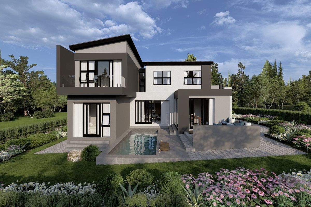 Entertain effortlessly in Fountainbrook Estate's family oasis with covered patio and built-in braai, boma and sparkling pool — modern kitchen, private balcony and four bedrooms, 3.5 bathrooms.