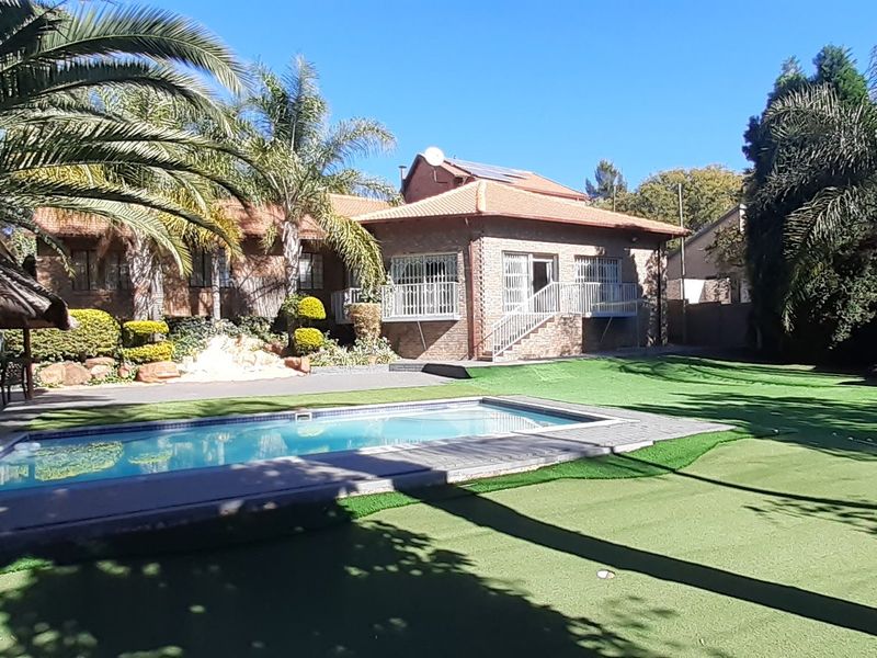 Entertain outdoors in Heuweloord, Centurion, with expansive gardens and a lapa for gatherings. Character home with thatched roof, large outbuilding and three bedrooms, two bathrooms.