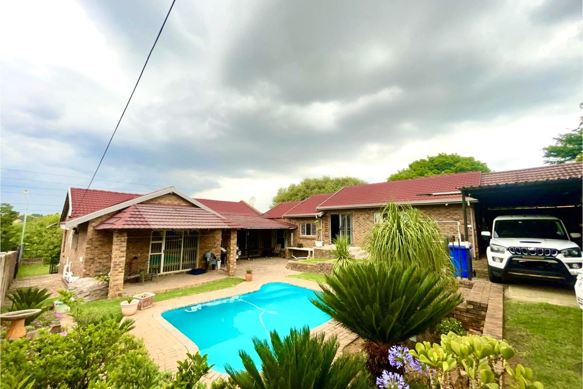 Outdoor living is a highlight, with a fully enclosed garden, swimming pool, patio for entertaining, and a Wendy house for extra storage. Parking is ample with a lock-up garage and four covered carports.