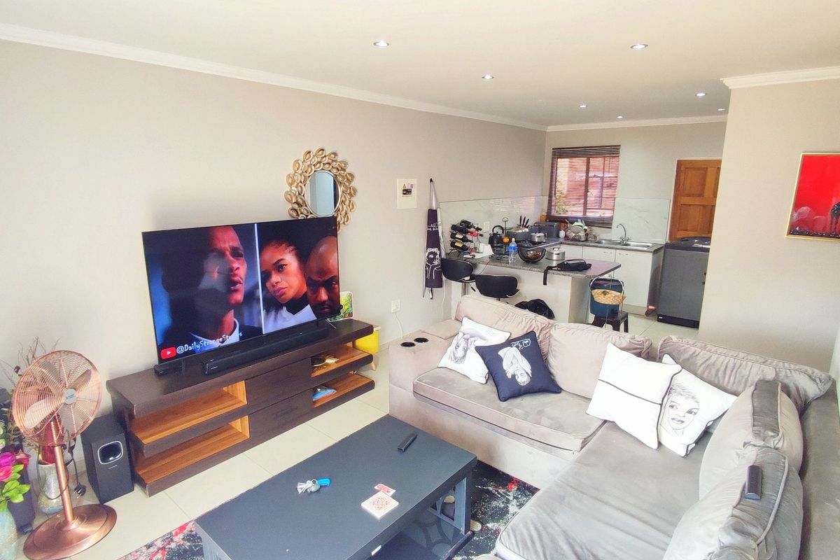Secure estate near Mall@55 and R55 — cosy wrap-around garden, open-plan kitchen with touch stove and double wine rack, 3-bed 2-bath, water included, double carport.
