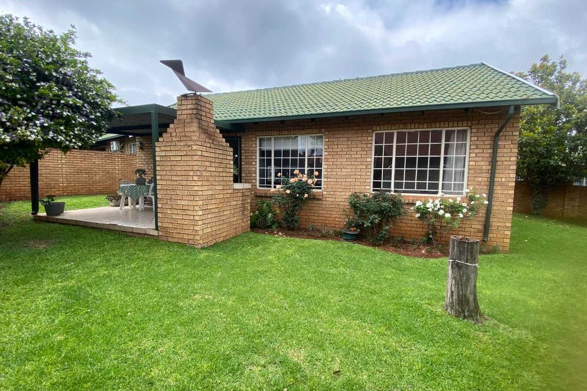 Relax in secure Highveld Estate living, close to amenities; this corner townhouse boasts a rare wraparound garden and covered braai patio — two bedrooms, one bathroom, extra-long garage.