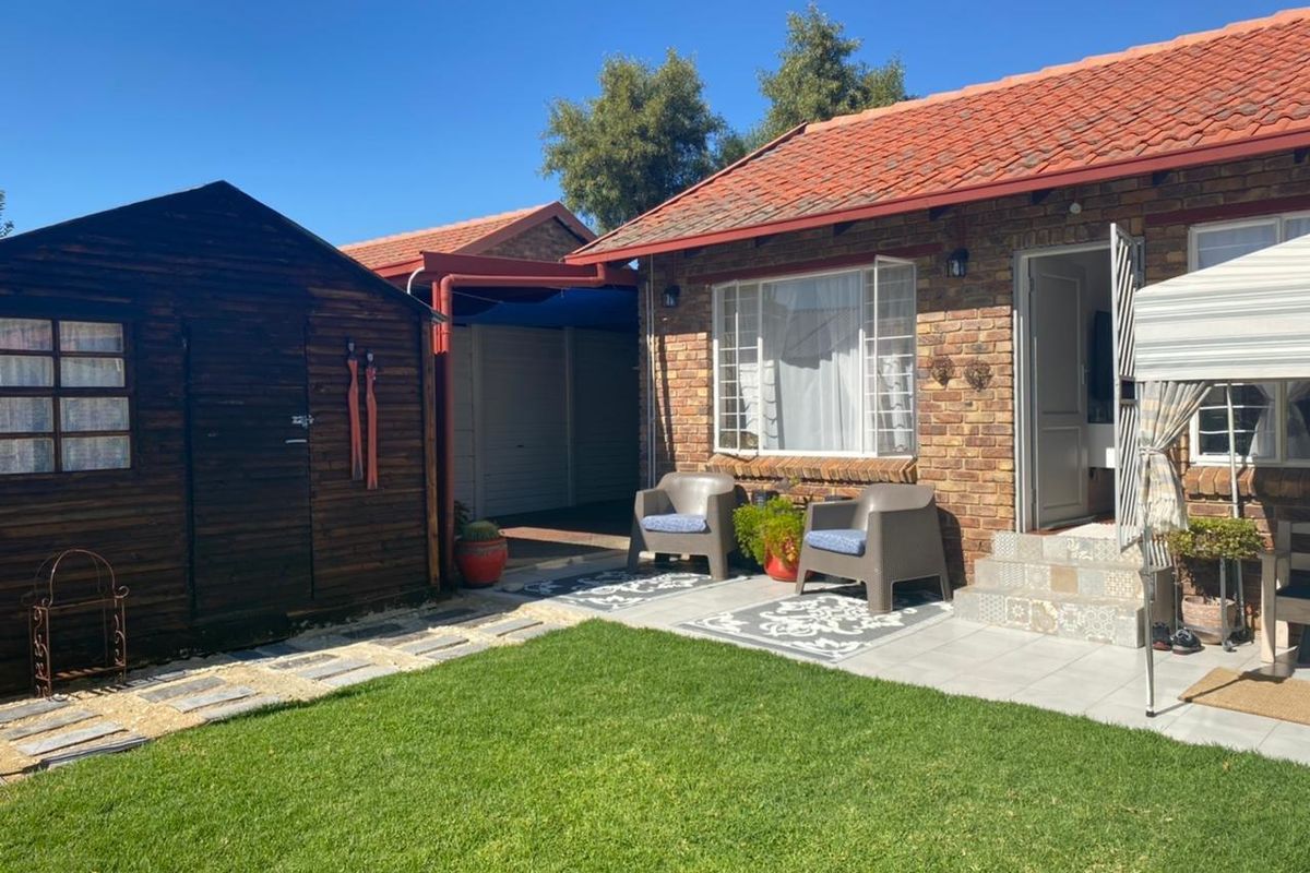 Relaxed, low‑maintenance living in a well-kept complex near amenities with communal pool and lapa; bright open-plan lounge and private garden for morning coffee. Two bedrooms, one bath, covered garage.