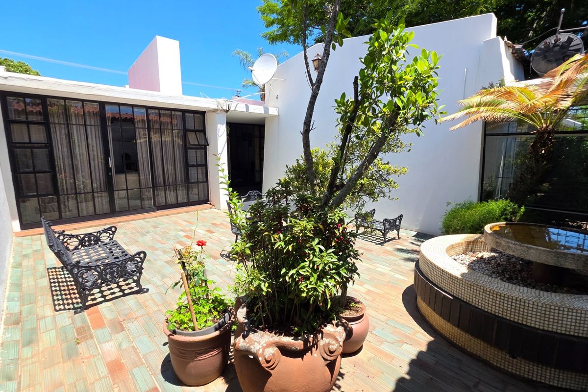 Additional features include a double garage with manual doors a laundry room two store rooms and a servant quarter with two rooms and a bathroom. The property has an alarm system and three geysers including one dedicated to the servant quarter. The paved driveway and country style yard offer charm and ample outdoor space.