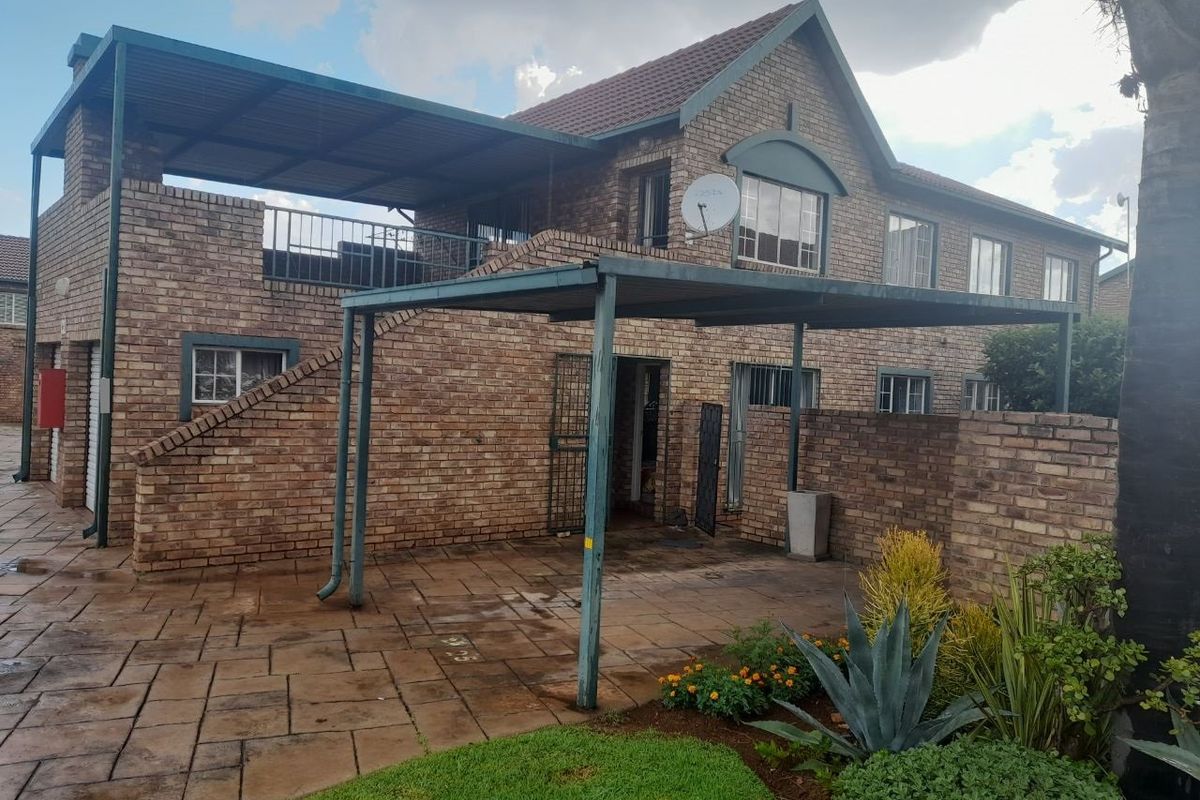 Entertainer's top-floor townhouse with large undercover patio and built-in braai, set in a secure complex near Unitas Hospital; open-plan kitchen, three bedrooms, two baths, garage.