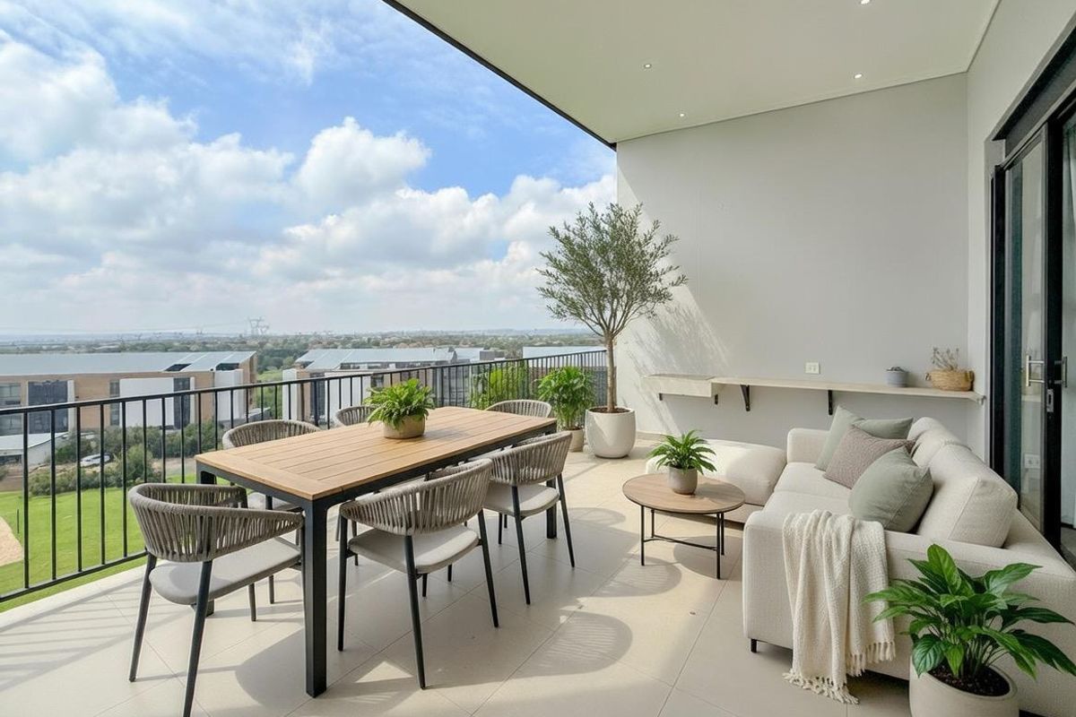 At the top of one of Midstream's most sought-after addresses, the penthouse offers 198 sqm of thoughtfully designed private space. Two spacious bedrooms, a luxurious main en suite, an open-plan living, dining and kitchen area that flows seamlessly onto a massive scenic balcony - your own private vantage point over the estate. A dedicated study space and two secure garages.