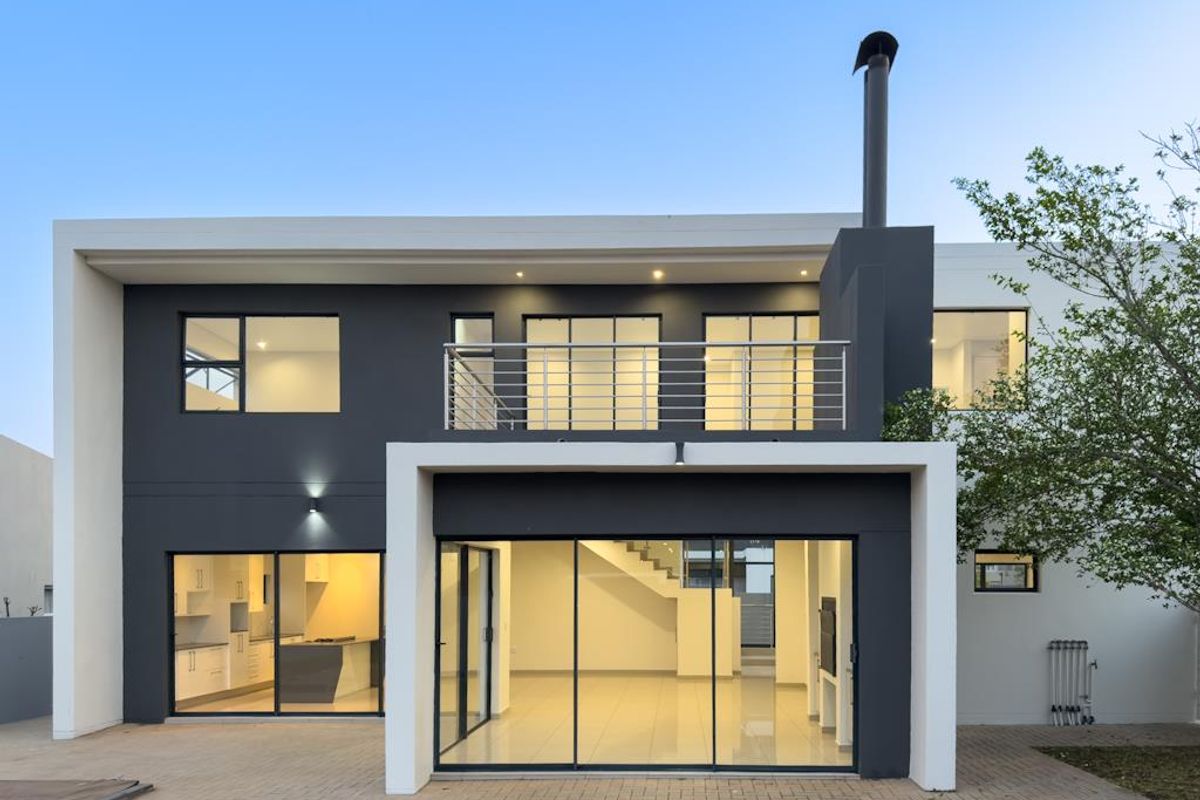 Geometric modern family home in Midstream Meadows with double-volume entrance, poolside open-plan braai and lounge, versatile ground-floor ensuite, and oversized balcony for sunset drinks. 3 beds, 2.5 baths.