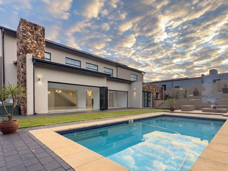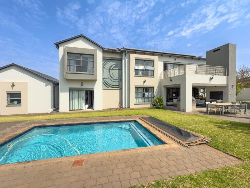 Entertain effortlessly and relax by the pool in Midstream Ridge Estate, overlooking a tranquil greenbelt — enclosed braai patio, modern kitchen, and seven en-suite bedrooms.
