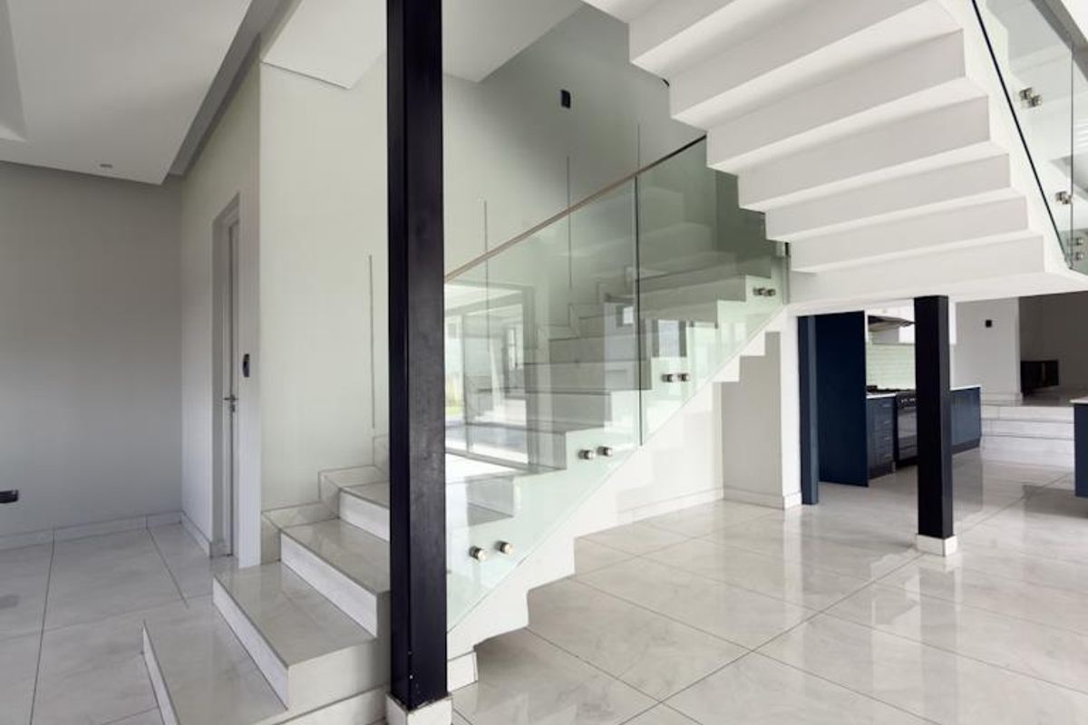 Entertain effortlessly and relax by the pool in Midstream Ridge Estate, overlooking a tranquil greenbelt — enclosed braai patio, modern kitchen, and seven en-suite bedrooms.