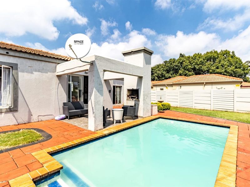 Family-focused living in Rooihuiskraal North, Centurion — secure neighborhood, tiled patio with built-in braai and landscaped garden ideal for entertaining; modern kitchen, three bedrooms and two baths.