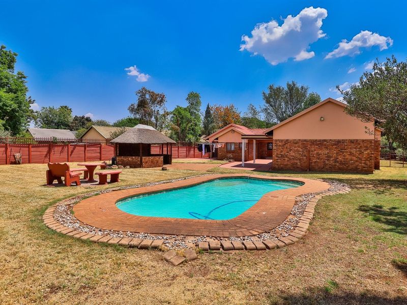 Effortless family living in Rooihuiskraal North, Centurion — open-plan lounge and dining flow to a large yard for kids and gardens; five bedrooms, three bathrooms, double parking.