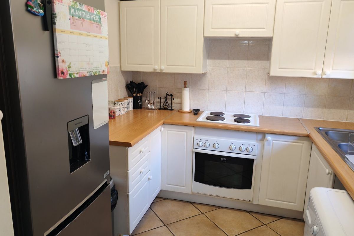 Offering a spacious and bright open- plan interior, with a lounge , seperate dining room , and lovely modern kitchen, with ample cupboards and space for your fridge and two other electrical appliances.