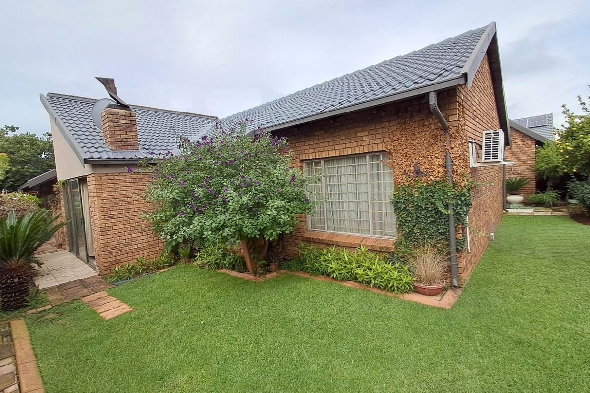 Peaceful, secure Amberfield townhouse ideal for pet owners, close to malls and schools, with large garden, enclosed braai room and double garage.