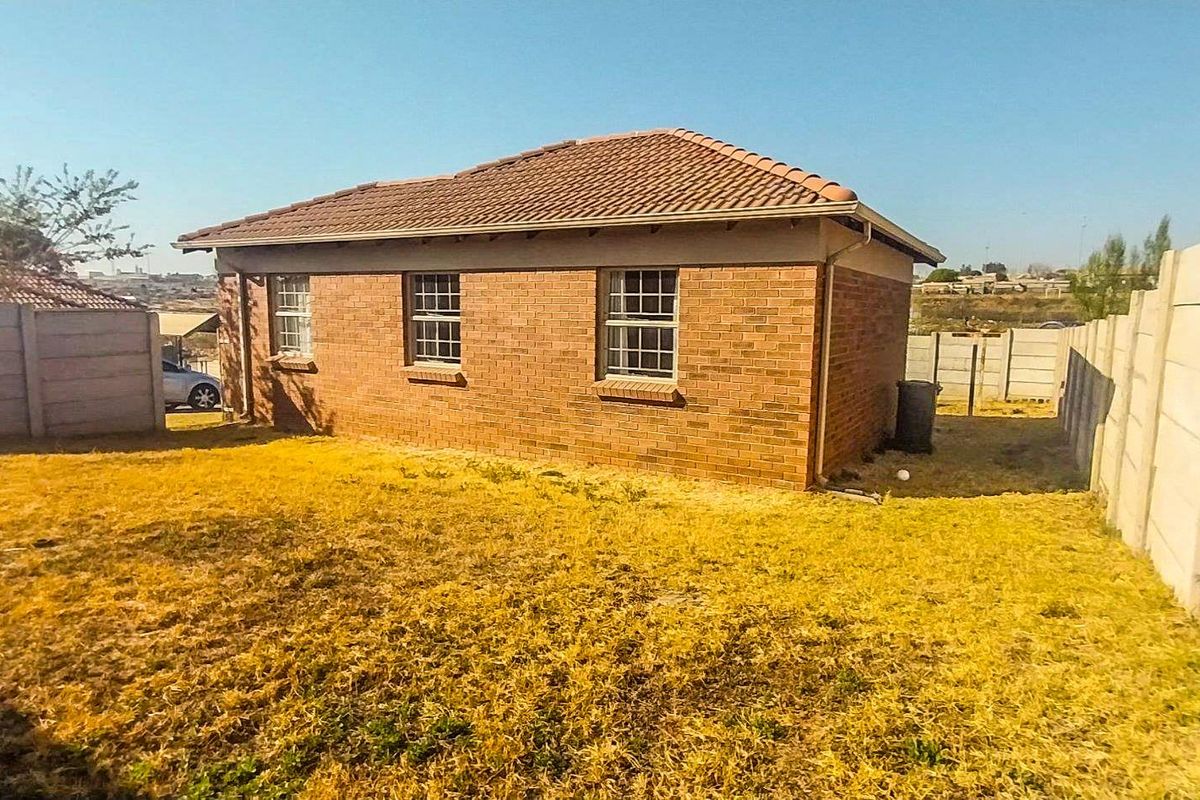 Three-bedroom home with open-plan kitchen, spacious yard, security features, and convenient access to major routes and amenities.