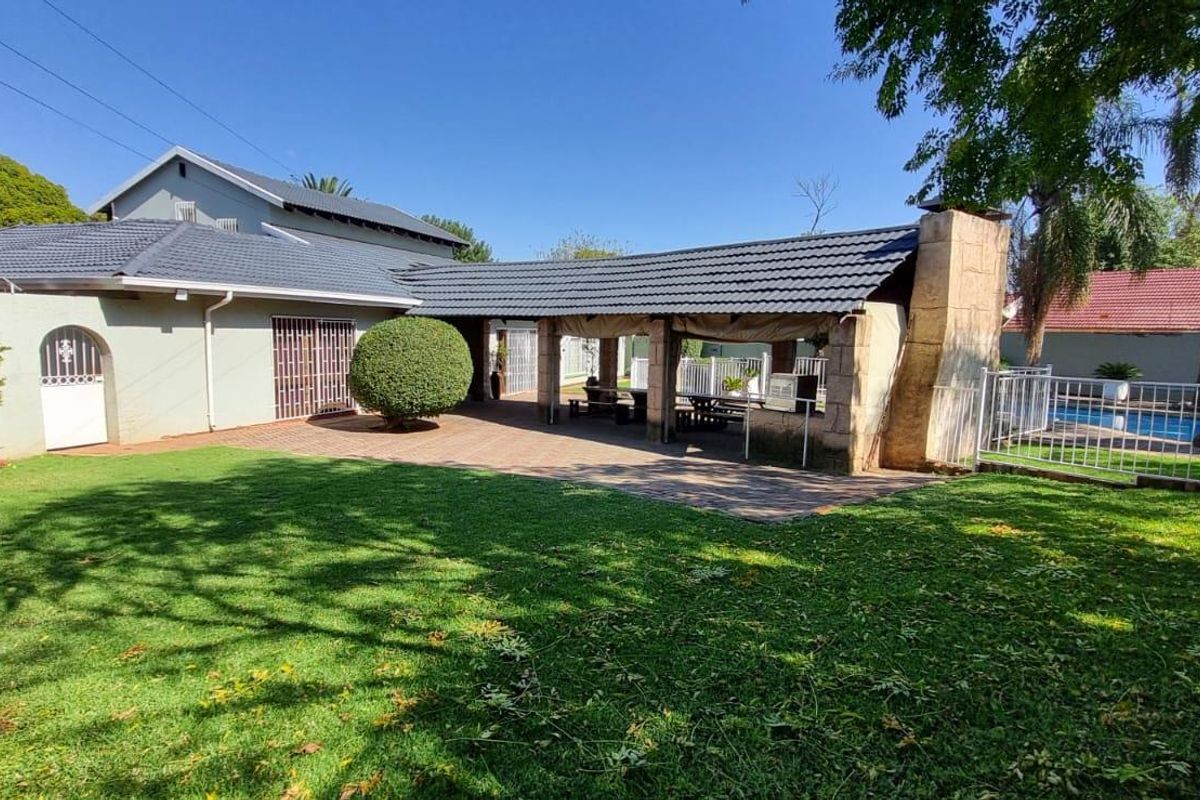 Additional highlights include outdoor servants' accommodation with a bathroom, a spacious garage that can accommodate four vehicles, and top-notch security features such as an electric fence, security gates, and bars on doors and windows. The property also comes equipped with practical extras like a generator with a changeover switch, borehole irrigation for the garden, two 200L geysers, a recently redone roof, and a 950 litre Jojo tank.