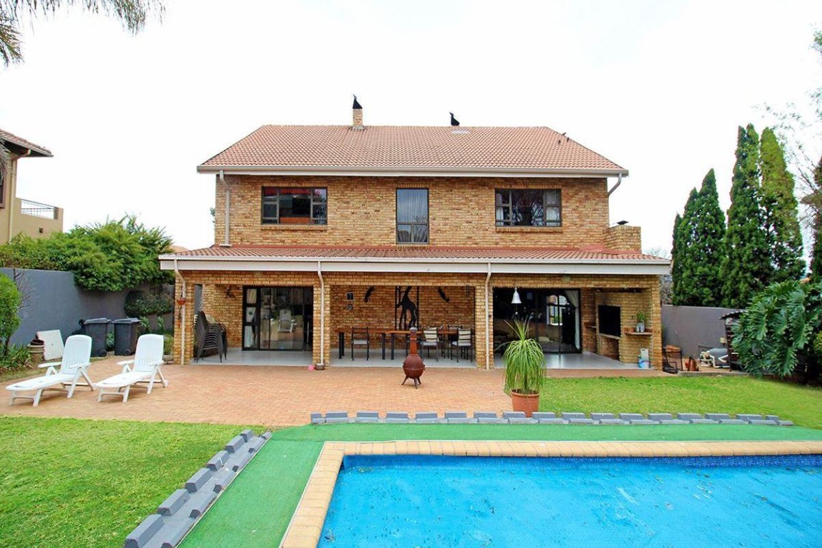 Entertainer’s dream overlooking a golf-course greenbelt, featuring dual fireplaces, covered braai patio, solar-heated pool, landscaped garden and self-contained one-bedroom cottage — five bedrooms, five bathrooms.