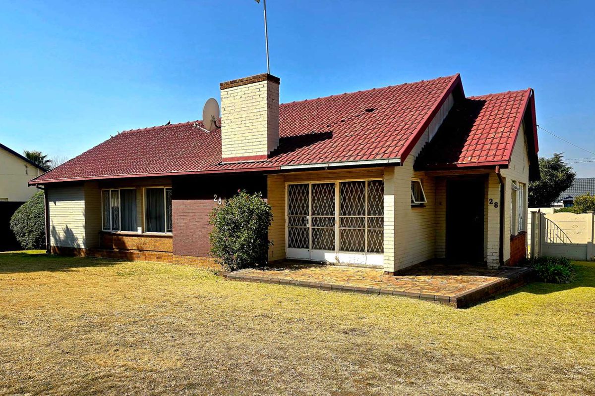 Sunny, character-filled home in Albemarle, Germiston — parquet floors, cosy lounge with fireplace, expansive 992m² yard with pool, wooden deck, lapa and built-in braai. Three bedrooms, two bathrooms and garage.