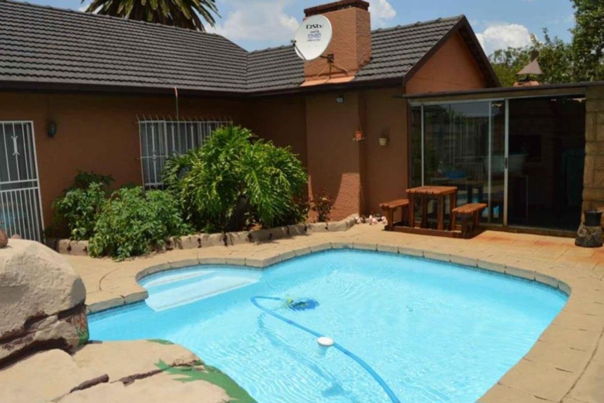Relaxed family living in Dinwiddie, Germiston, with private pool and built-in braai for entertaining, income-ready separate flatlet, bright open-plan kitchen and double garage.