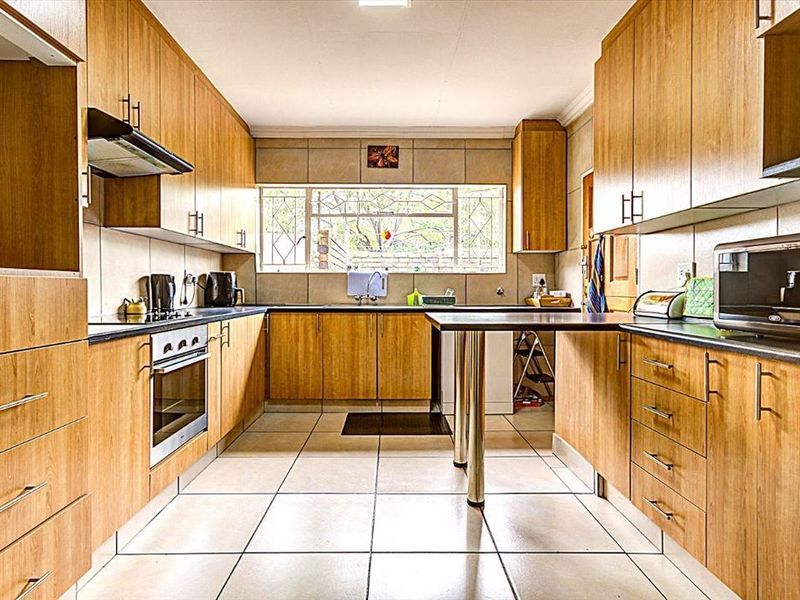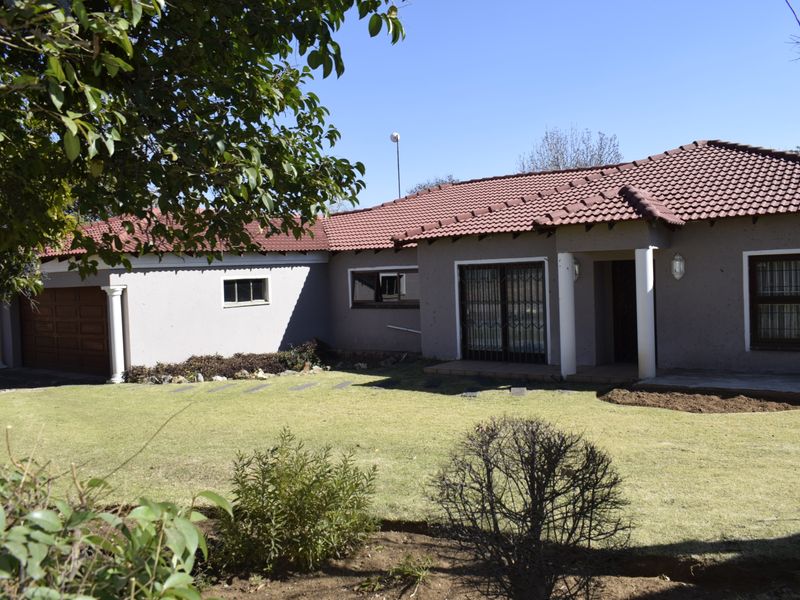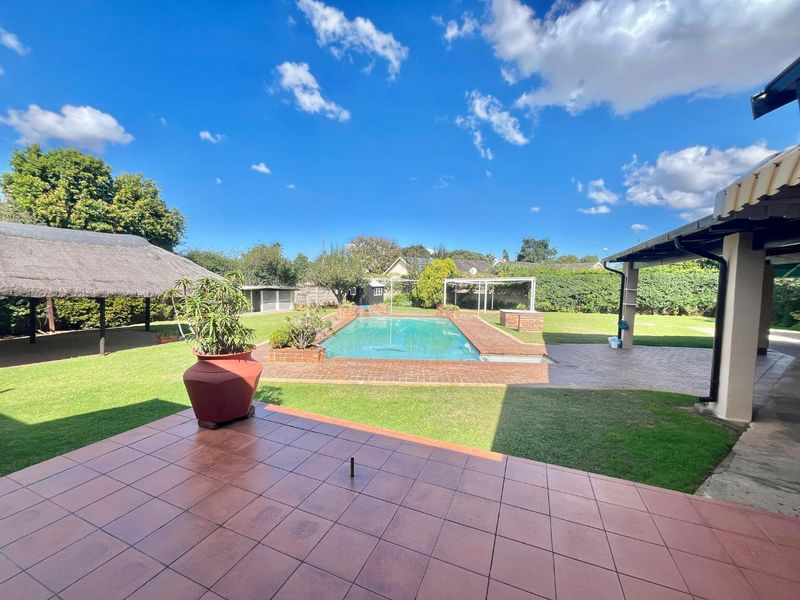 Entertainer's haven in a leafy suburb, with expansive garden, splash pool and lapa with fitted braai. Modern kitchen, study, four bedrooms, two bathrooms, three garages.