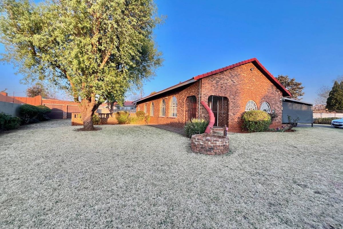 Low maintenance house with face brick walls, pitched tiled roof, steel windows, and a brick-paved driveway. Motorized gate. A 1.8-meter wall surrounds the property: three sides with pre-cast walls and one side with a brick-built wall. Large, open, level garden with grass.