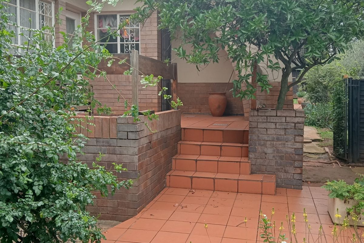 Tranquil home in a charming suburban neighborhood, conveniently close to shops yet in a peaceful setting. It boasts a beautiful garden and lapa for entertaining, creating a serene atmosphere. The house features 3 bedrooms, a study, 2 lounges, and a dining room, with robust security measures including security doors separating areas. One lounge, with a wooden ceiling, offers a secure view of the garden. The main bedroom includes an en-suite bathroom and a walk-in dressing room with garden access. Security is paramount, with an alarm system, solar-powered garden lights for nighttime safety, and an electric gate. Additional amenities include an outside laundry, extra bathrooms, storage rooms, and a garage. The kitchen is a chef's delight, featuring modern appliances integrated seamlessly with classic cabinetry, providing ample storage and workspace.The adjacent dining room, filled with natural light from large windows, ensures that family dinners are a warm and inviting experience.