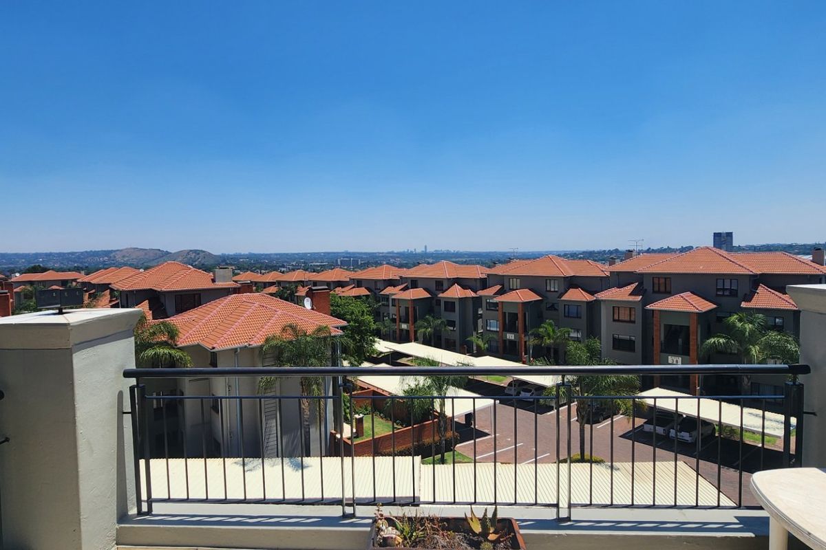Resort-style living with Johannesburg skyline views; renovated kitchen, balcony with built-in braai, three bedrooms with two en-suites, pool, gym and 24-hour security.