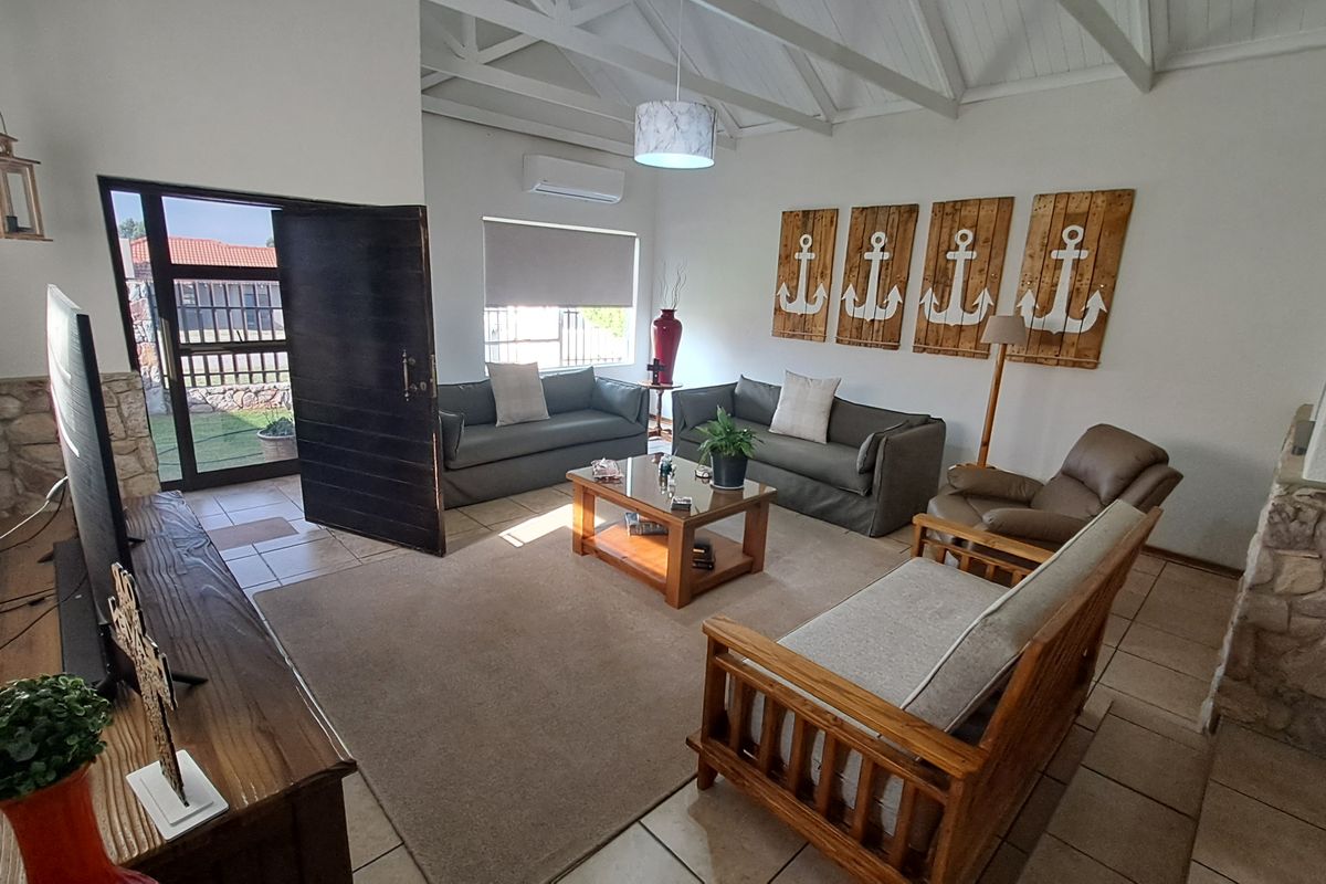 The home features a heated swimming pool, ideal for year-round enjoyment, along with an enclosed braai area that makes entertaining easy in any season. A dedicated pool room with a convenient kitchenette and guest loo adds extra versatility—perfect for gatherings or as a private entertainment space.